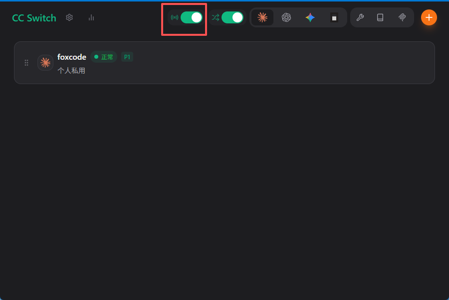 - 配置完成回到cc-swich的主页界面,打开按钮,API生效